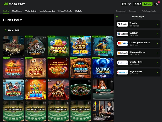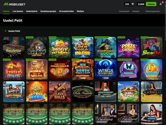 Mobilebet Casino supports the following languages: Finnish
