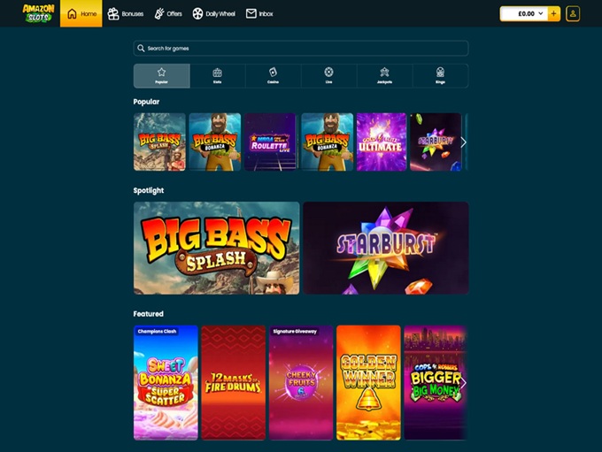 Enjoy a unique experience with Amazon Slots, a pay-by-mobile casino. Sister to Dove Slots, a generous variety of slots and casino games make up the spread of games, with content from leading providers. Register and receive a spin on the Mega Reel to immediately kick this new gaming experience into high gear. Added promotions and a loyalty program also provide an added dose of excitement to the mix. Powered by Jumpman Gaming, players may also take comfort in knowing your private details will remain safe via implemented encryption technology.