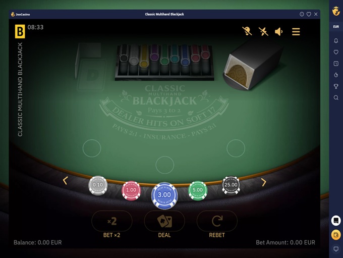 Blackjack – Classic, Multihand Pro, Surrender, Super 7, Double Exposure, Atlantic City, Spanish 21 Gold, Single Deck, Red Queen, High Streak Gold Series, Pontoon, Pirate 21, Vegas Downtown, High Limit European.