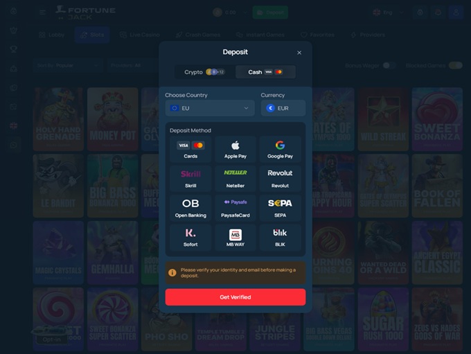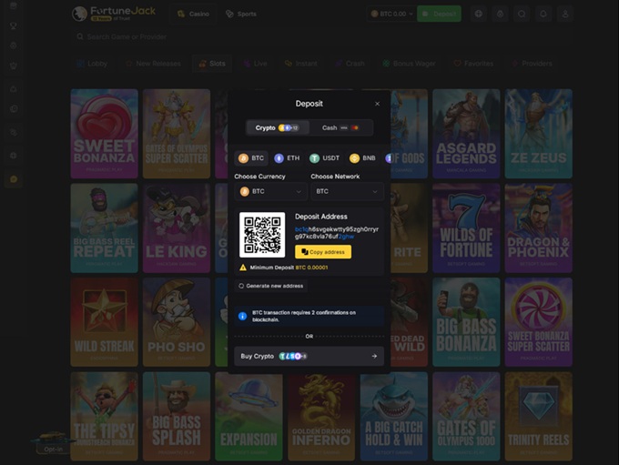 FortuneJack Casino supports banking methods for deposits and withdrawals for Bitcoin, Litecoin, Bitcoin Cash, TRON, Dogecoin, Ethereum, Dash, Monero, USD Coin, Tether, Zcash