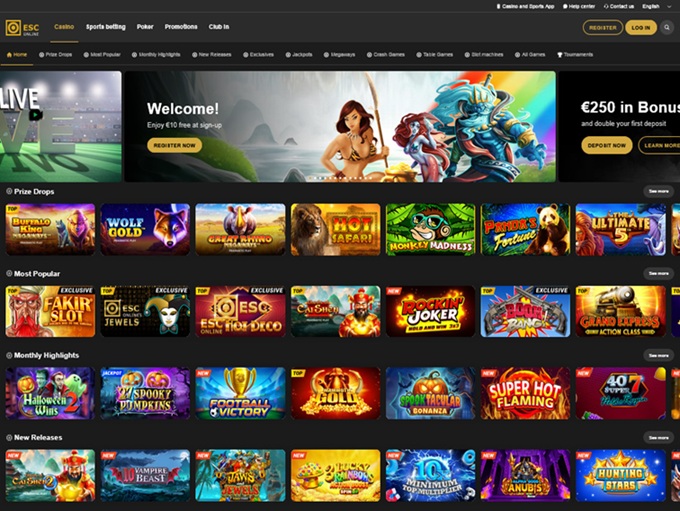 The layout doesn’t offer much to look at, with a simple, black, gold, and white color scheme and no real theme. But, we remind you that’s it’s not all about the looks. Luckily, navigation is made easy with convenient tabs for gaming categories, promotions, help, and its two divisions for casino and sports betting. 24/7 support is on hand and the site is operated by Estoril Sol Digital S.A.
