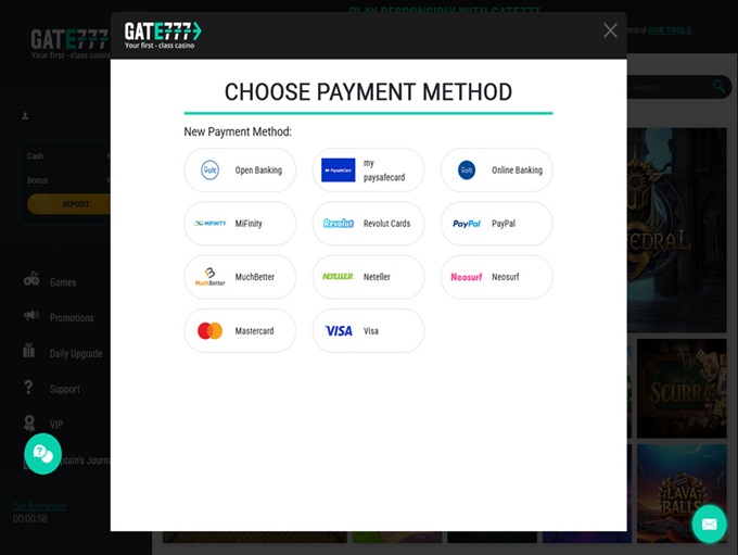 Gate777 Casino supports banking methods for deposits and withdrawals for Bank Wire Transfer, Maestro, MasterCard Credit, Visa Credit