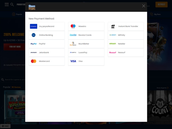 Dream Vegas Casino supports banking methods for deposits and withdrawals for MasterCard Credit, Visa Credit, Maestro, Apple Pay, Bank Wire Transfer, MasterCard Debit, Luxon Pay