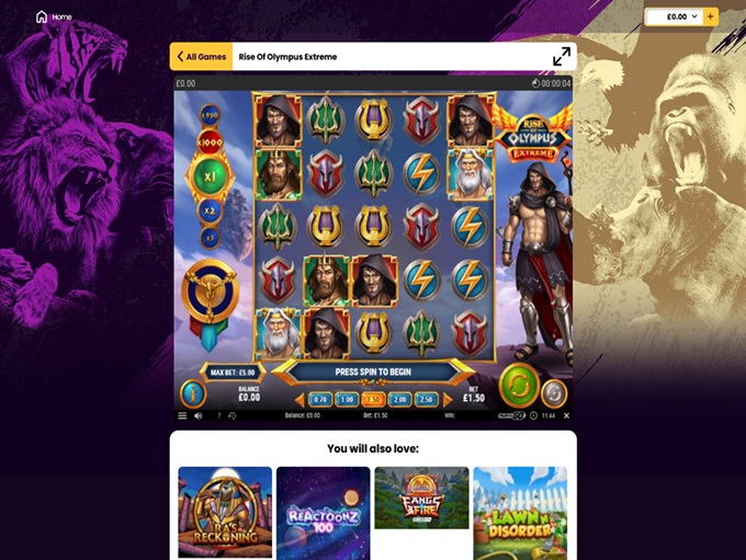 The home page pops off the screen with vibrant purple, gold and green colors and a collection of animals bringing to mind an African safari. There is a cactus which looks a bit out of place next to the rhino, tiger and gorilla but it is a fun look nonetheless. A drop-down menu leads to promotions and games and a list of big winners streams across the middle of the screen. It is an exciting introduction. You have to scroll down a bit to find the contact info, FAQs, terms and conditions and so forth, but that’s fine as these are not areas of the site one expects to visit on a daily basis. All in all, it is a smooth design that makes one eager to jump into the action.