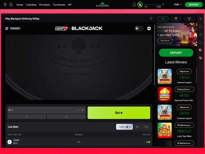 A free play demo is accessible without the need to register or log in, making KatsuBet Casino ready in an instant! Each game demo provides a chance to get a better understanding of how the games work and how you can win, all without spending any of your hard-earned cash. Statistics on recent winners and how they won will be placed in the social status bar to the right of your game, along with info on big winners and the ability to save the game to your favourites list.