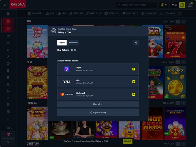 Of all the names you could have for an online casino, why choose Rabona? We’ll let you into a little secret shall we; Rabona is a term widely used to describe the action of one striking a ball – while the kicking leg is in motion, the standing leg is crossed behind, giving the player more stamina and force in which to direct the ball. Okay, so you’re probably even more confused now, right? Think about it; it’s actually quite clever because Rabona initially launched as a sport betting website before welcoming online casino layers with a huge varied gaming catalogue! Now can you see why this specific name was chosen.