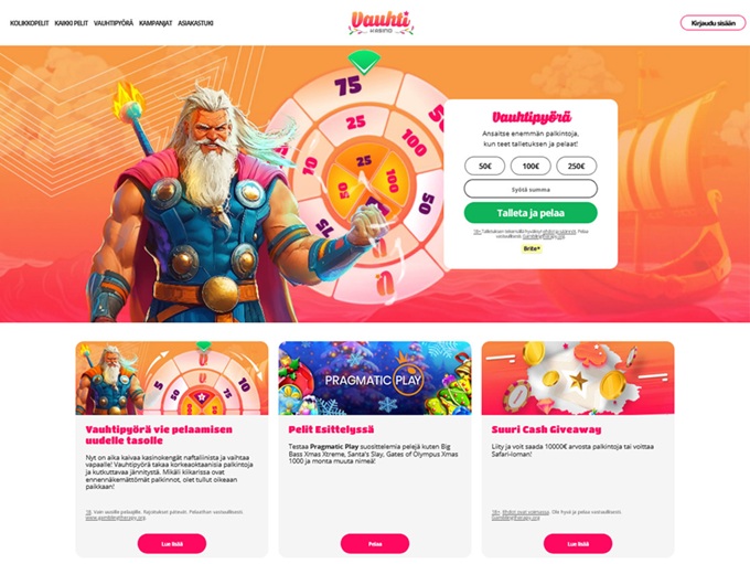 The word 'vauhti' itself when translated from Finnish has many meanings such as pace, speed, rate, momentum, etc., so from the very name of this casino we can see that the casino has chosen Finland as a target country.
