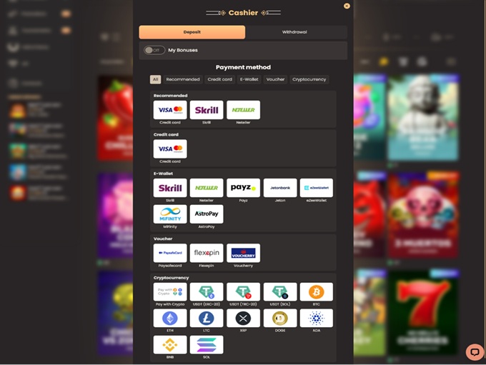 - The casino offers a variety of payment methods including cryptocurrencies