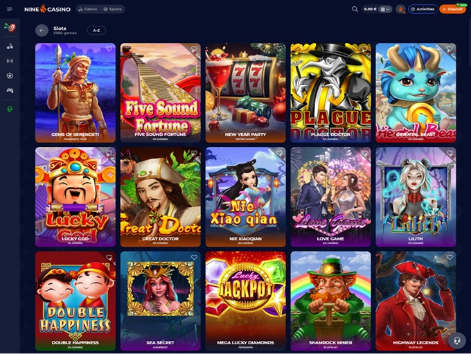 Categories such as promotions and tournaments can be found there. Centered at the homepage the game menu is presented, separating various types of games Nine Casino offers to the players, as well as listing all of the iGaming software providers.