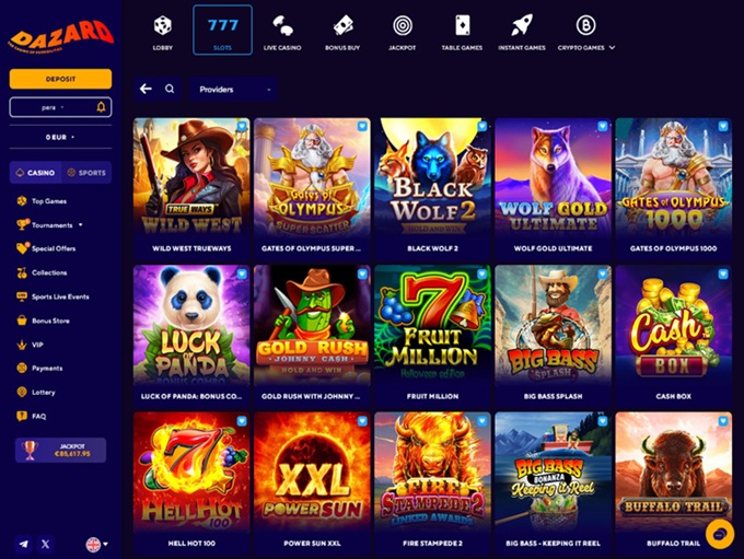 Dazard casino has an enormous range of slot games and a great offer of table games as well.