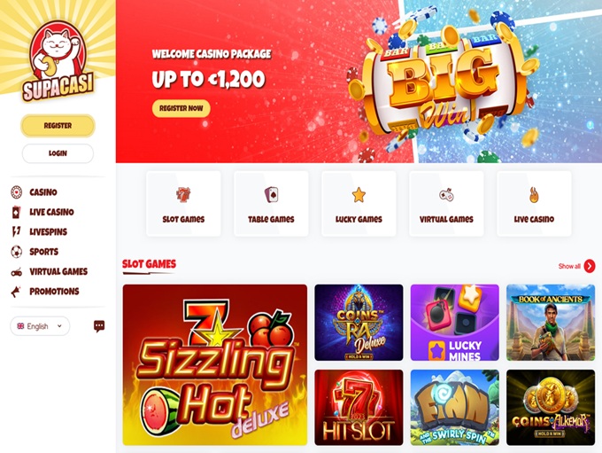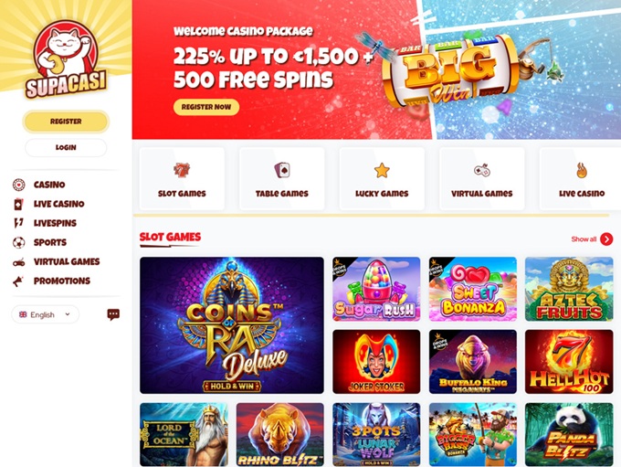 The website is brightly colored and easy to navigate, available in multiple languages. All the important information and options are clearly displayed on the home page. Supacasi has got your back!