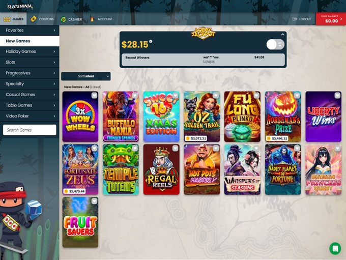 Slots Ninja is operated and owned by Entertainment Software Group N.V and is licensed by the Government of Curacao. It works with software companies such as Real Time Gaming and Visionary iGaming, some of the best known names in the gaming industry.