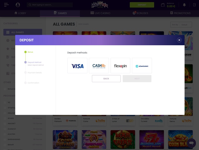 Madnix Casino supports banking methods for deposits and withdrawals for Visa Credit, MasterCard Credit, Bank Wire Transfer, Bitcoin, Bitcoin Cash, Maestro, MasterCard Debit