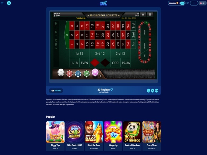 At the top, you can also toggle the language displayed on the website, as Blizz Casino supports several languages besides English, like French, Spanish, Polish, and German.
