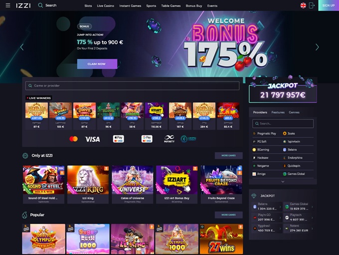 Players from Canada, Russia and Ukraine will have a real blast with Izzi Casino. It promises quite a unique experience thanks to a huge variety of events, banking methods, fast withdrawals, and of course, games. Although it joined the market in 2021, Izzi is already a recognizable name in the industry and a good brand to take into consideration.