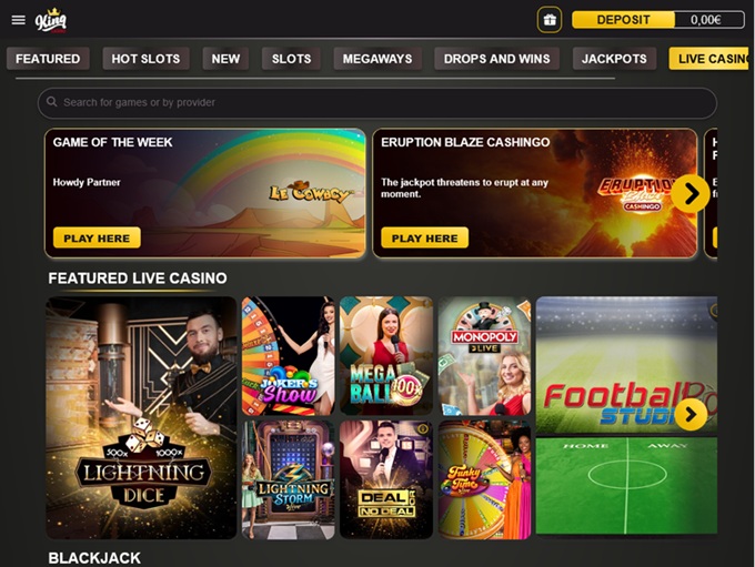 Game Shows - Crazy Time, Deal or No Deal, Mega Ball 100x, Monopoly, Dream Catcher, Dream Catcher First Person, Mega Ball 100x First Person, Football Studio, Gonzo's Treasure Hunt, Side Bet City...