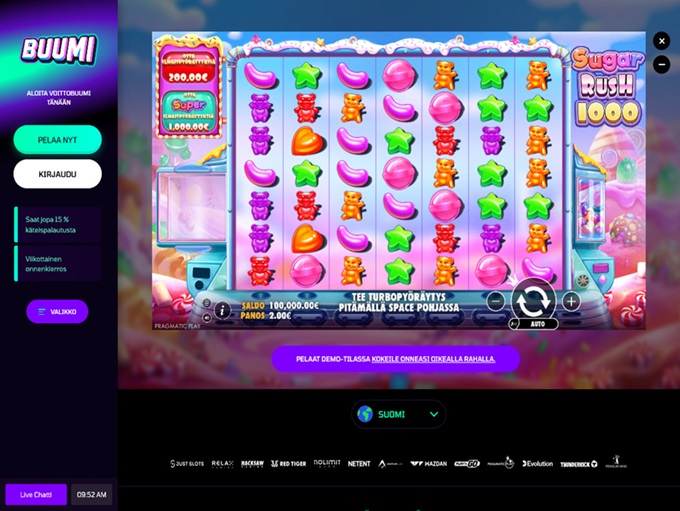 Buumi casino may take pride in the fact that so many companies are eager to let their finest products be available to gamers. There are dozens of names to choose from in this category, some of them are Pragmatic Play, BetSoft, NetEnt, Evolution Gaming, Hacksaw Gaming…