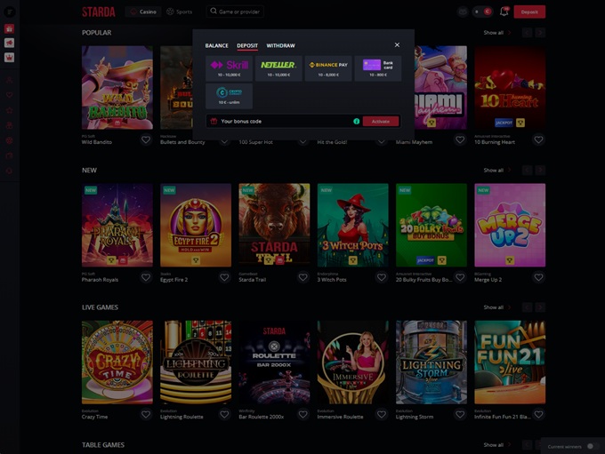 Now it's time to check the bonuses and promotions offered by Starda Casino!