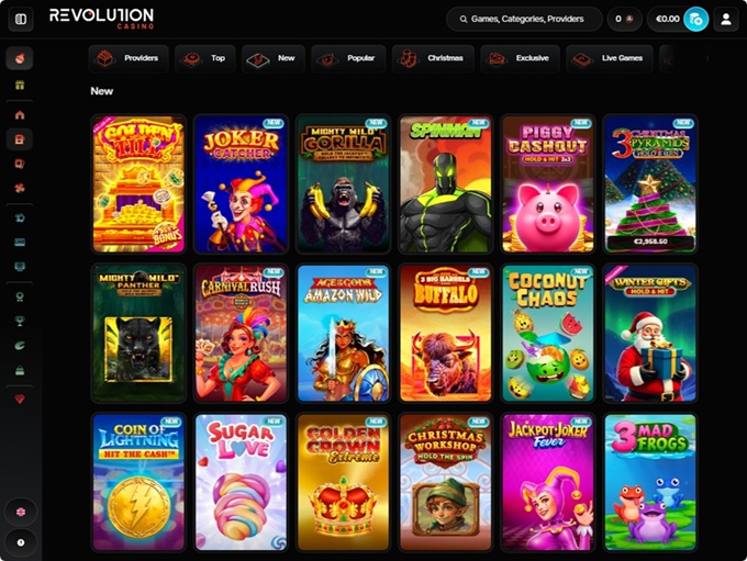 Thousands of titles await members of Revolution casino, in various sizes and forms. Play for real or in demo mode whichever game you choose, casino or live casino.