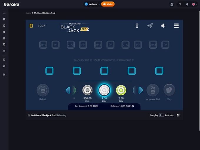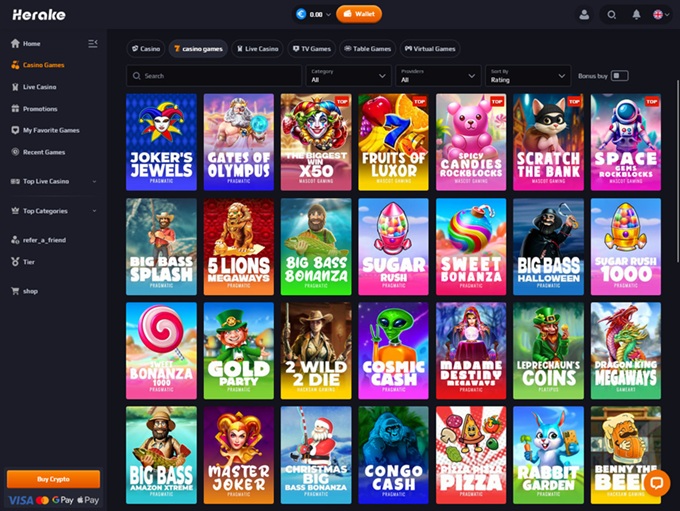The website of the casino has a standard look we are used to seeing, a dark background topped up with letters and images. Although this is a usual look often seen, this is not as significant as organization, layout and functionality. When you get to the homepage of Herake casino, you will immediately see what it offers in the menu on the left side. The center of the page portrays game icons and images related to sports or gaming. The language of the website can be changed in the upper right corner, there are many languages to choose from.
