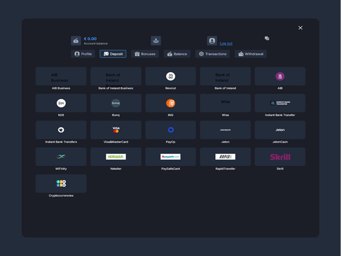 Those who prefer to stick with cards can opt for VISA and MasterCard, whereas fans of cards and similar payment options can fund the account and cash out using Revolut, eZeeWallet, Jeton, MiFinity, Neteller, Skrill, and others.
