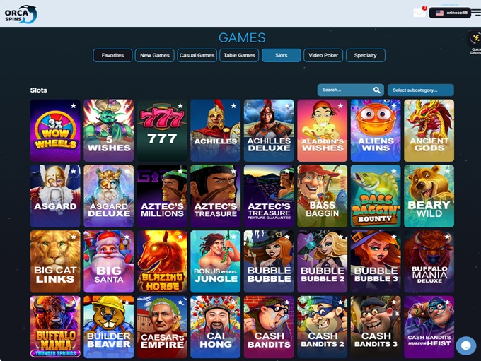 Playing at Orca Spins