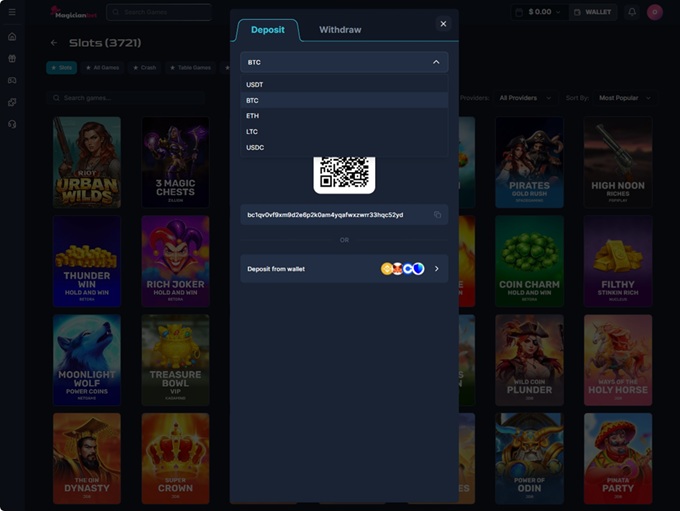 Following the current iGaming trends, the team at MagicianBet Casino has opted to make their platform fully support crypto betting practices and provide for a lightning fast and secure place for players to enjoy.