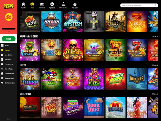 It is not always about looks but rather what is inside and Super Casino depicts that sentiment perfectly. The landing page is fairly simple with black and grey tones and enticing enough to draw gamblers in. Getting started is uncomplicated requiring no download of software and can be accessed from your browser in Instant Play. Security is at its best with sophisticated 128-bit encryption technology offering theft fool proof transactions. Playtech software powers the platform with outstanding state-of-the –art products and are one of the leading and long lasting gaming sources in the industry. All Casino products are certified for authentic game play. Super Casino is fully licensed and regulated by the Alderney Gambling Control Commission.
