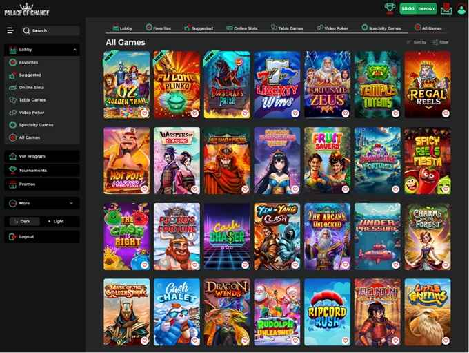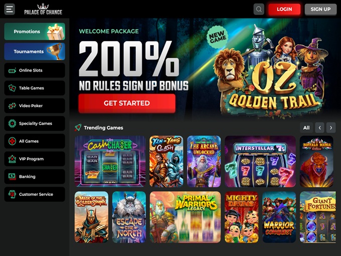 The promotions and Bonuses are tempting at Palace of Chance and are known for a wide variety of enticing offers. Read the terms and conditions carefully before accepting any offers and understand them thoroughly before claiming any.