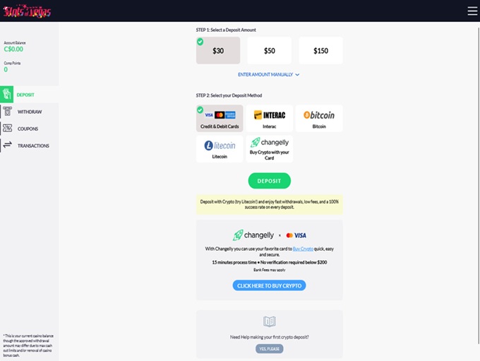 Slots of Vegas supports banking methods for deposits and withdrawals for Bank Wire Transfer, MasterCard Credit, Visa Credit, Bank Draft/Cheque, Bitcoin, Players Rewards Card, American Express, Discover, Litecoin, Apple Pay, Google Pay, USD Coin, Ethereum, Dogecoin, Tether, Bitcoin Cash, Ripple